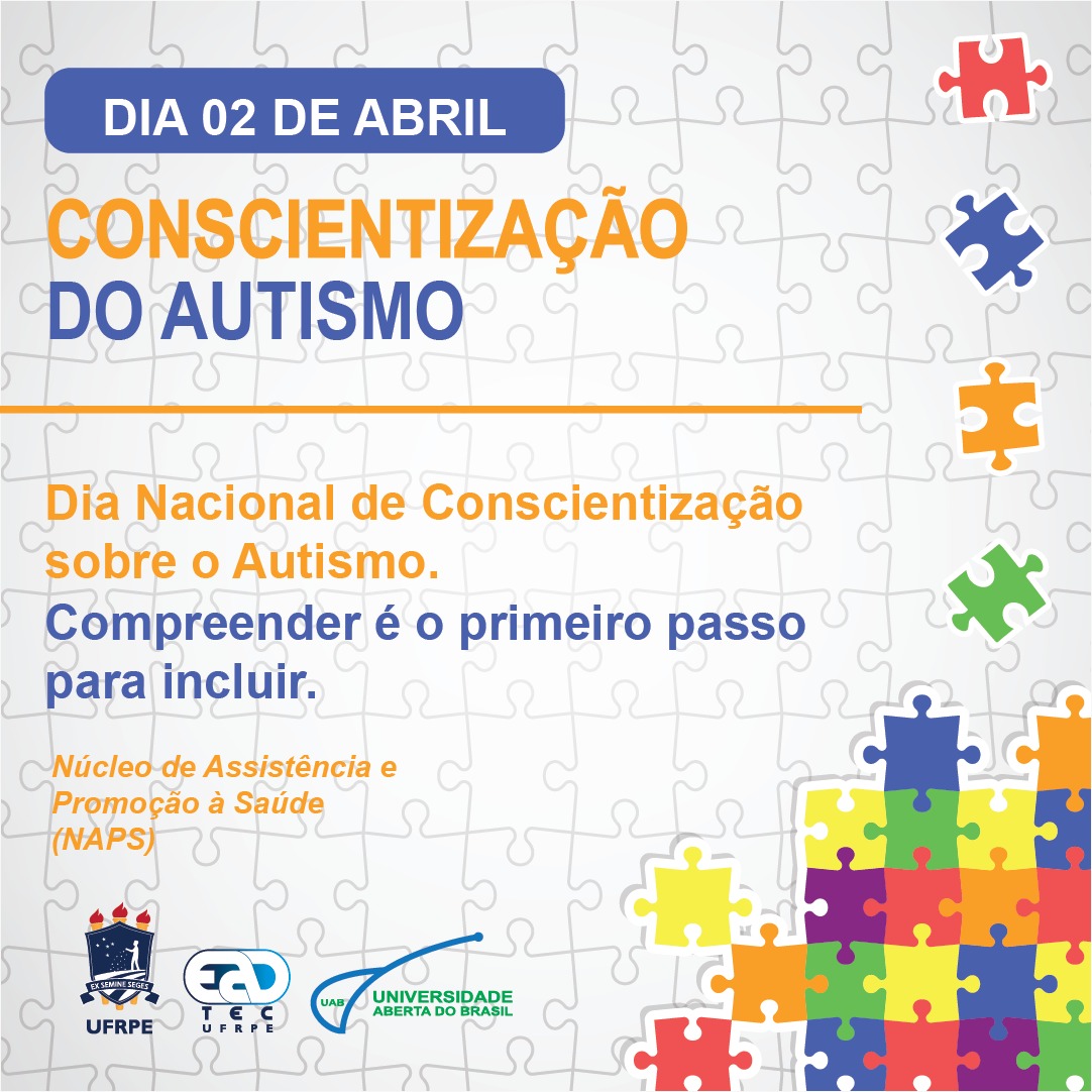 A UAEADTEC/UFRPE, através do Núcleo de Assistência e Promoção a Saúde (NAPS) reforça seu compromisso com a educação acessível, diversa e acolhedora, reconhecendo a importância de compreender o Transtorno do Espectro Autista (TEA) como parte da pluralidade humana. Mais do que conhecer, é fundamental agir: criar ambientes que respeitem as diferenças, valorizem potencialidades e garantam oportunidades iguais para todos.